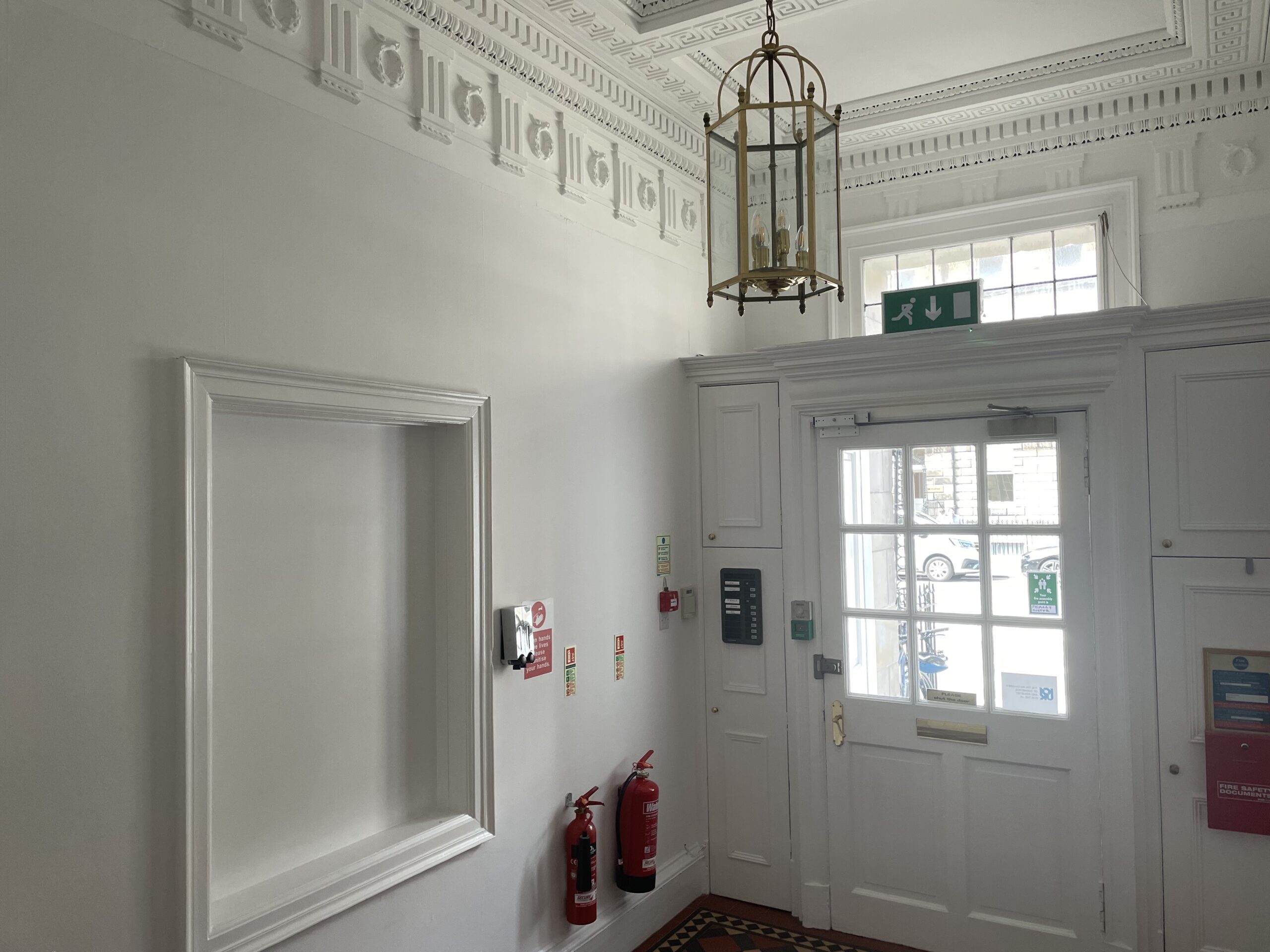 Throughout all 3 floors, ceilings and walls were decorated within the numerous offices, boardroom, stores, tea preps and toilets. All existing woodwork such as internal doors and windows, dados, architraves, skirtings, cills, panelling, hatches and mantlepieces were decorated.
